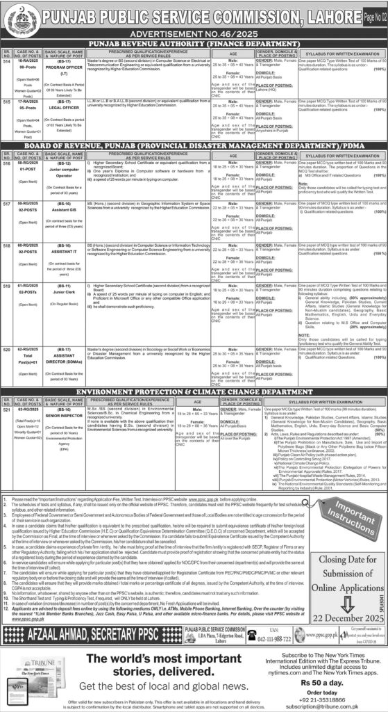 These positions were shared on 06 December 2025 and are announced by Punjab Public Service Commission PPSC, a well known government recruitment body in Punjab. This hiring is important because PPSC selects candidates for stable government careers across different departments. The jobs are based in Lahore, Punjab mainly around Egerton Road area, and offer full time government service. Many education levels are accepted which makes this recruitment useful for fresh graduates as well as experienced professionals. Government jobs through PPSC are valued for job security, structured growth and professional respect. Candidates from Punjab who meet the requirements should pay attention to this opportunity and prepare their applications carefully.