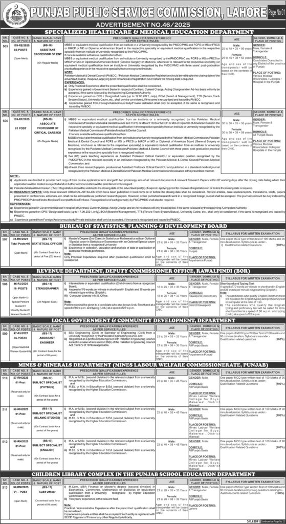 Before applying, candidates should carefully read the eligibility rules mentioned by PPSC. Education, age, and experience conditions may differ for each post. Always match your qualification with the post requirements.
